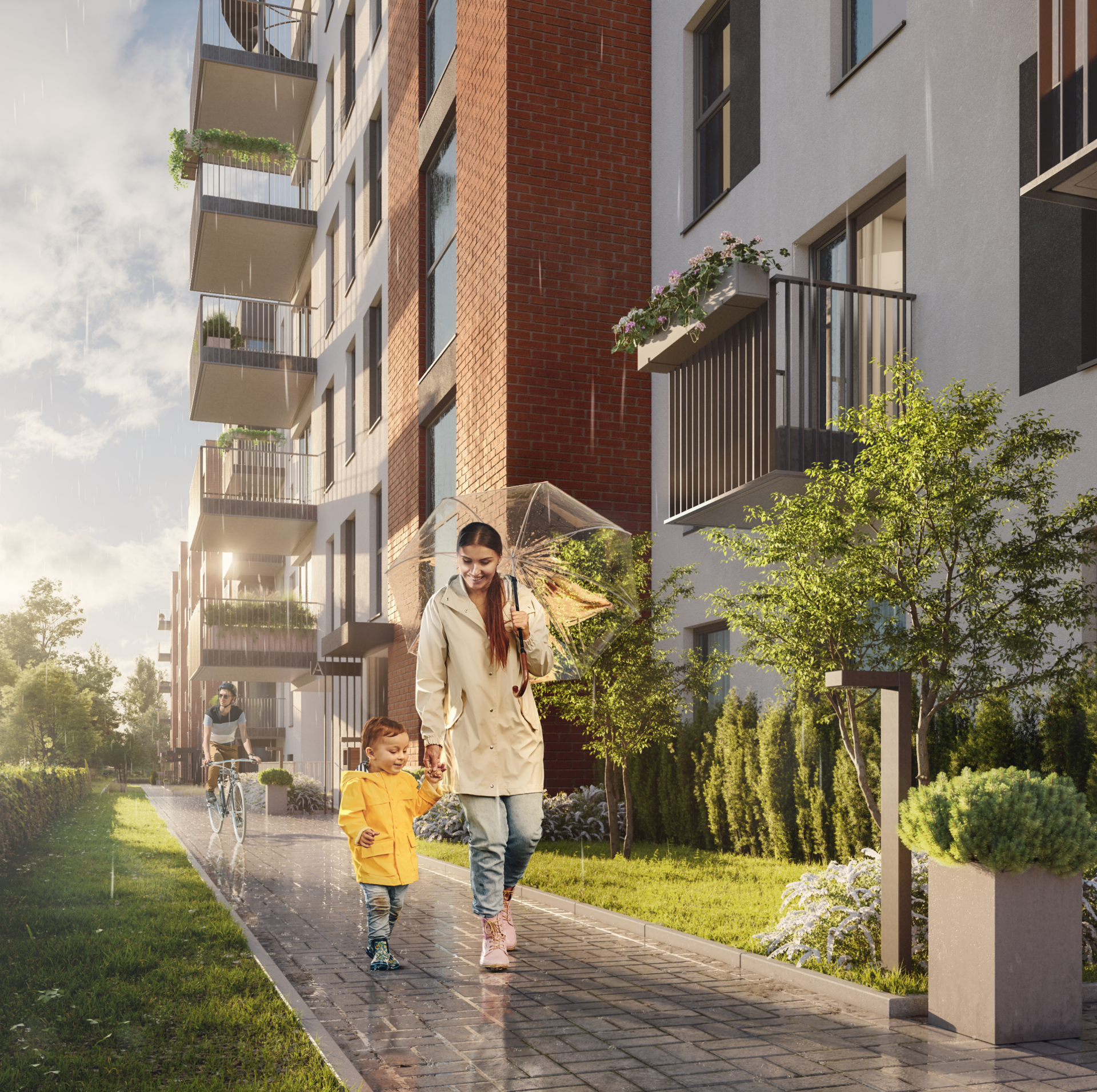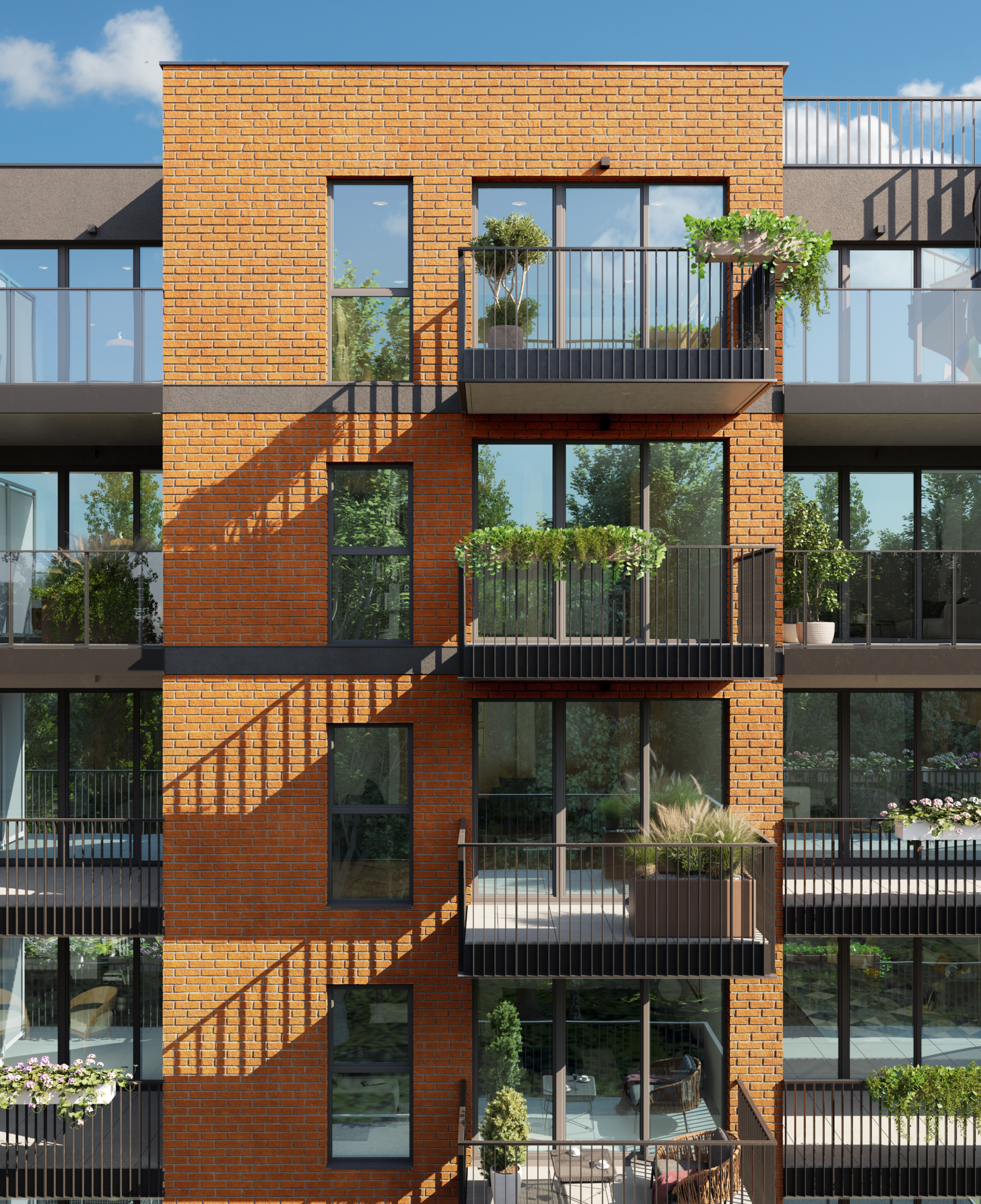 Industrialne formy geometryczne, nawiązujące do fabrycznych kominów wpisują budynek w żywą tkankę historycznej przestrzeni miasta. Stylowe połączenie materiałów na fasadzie budynku tworzy prawdziwie wyjątkową oprawę. Jeden rzut oka, jeden błysk, murowane wrażenie. Dzięki architektom biura ‘neoprojekt’ powstała funkcjonalna i nowoczesna architektura, inspirowana industrialnym charakterem miasta i podkreślająca jego atuty. Stworzono osiedle wizualnie związane z miejscem, które jednocześnie stanowi nową jakość i wartość dla otoczenia. Miejsce, w którym po prostu chce się żyć.
